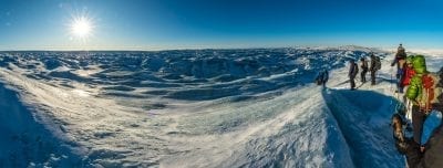 Try a walk on top of the Greenland Ice Sheet, the northern hemisphere's largest ice cap, and take a walk in the magnificent snow-covered icescape. This world is white as far as the eye can see.