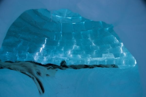 The trip to the Igloo Lodge is also exciting in itself. You will be taken in a snowcat for about an hour into Ilulissat’s hinterland with fantastic views along the way. When you arrive, it is time for coffee and lunch, the snowshoe excursion, afternoon coffee and cake, dinner, and evening coffee. You will look for the northern lights, stay overnight in your igloo, have breakfast and, finally, you go on a snowcat trip back to civilization.