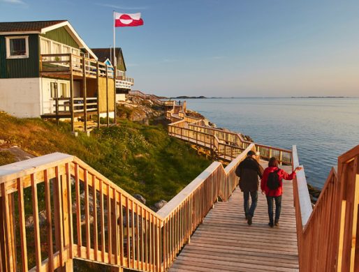 On this tour, you’ll stay a night in spacious and cozy tents at Camp Kangiusaq – a peaceful oasis nestled deep within the fjord system. Wake up to complete stillness, crisp air, and views of glittering waters and majestic mountainsides. Get close to nature on tranquil hikes, go kayaking among icebergs, or simply enjoy a warm cup of coffee on your private terrace while keeping an eye out for whales and sea eagles on the horizon.